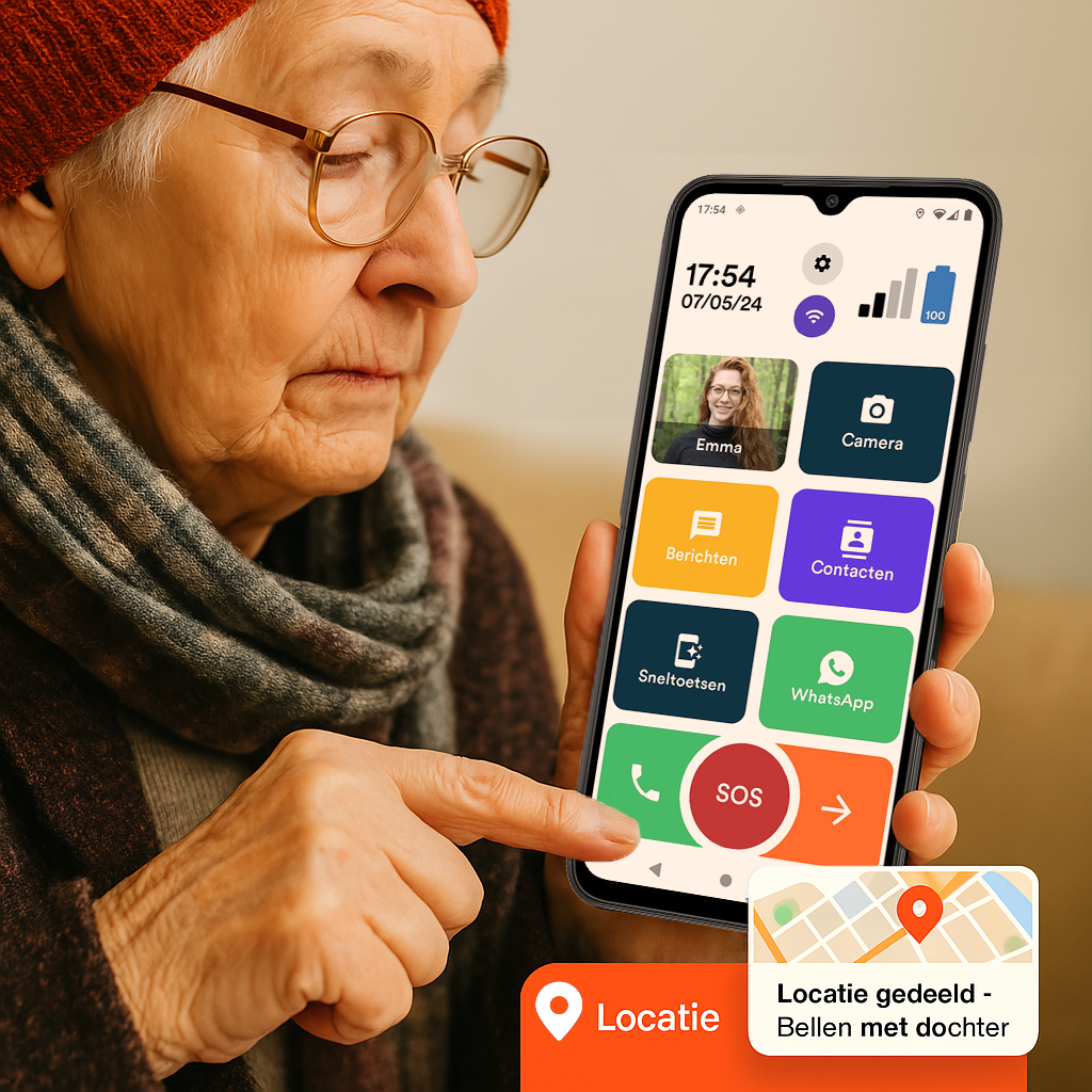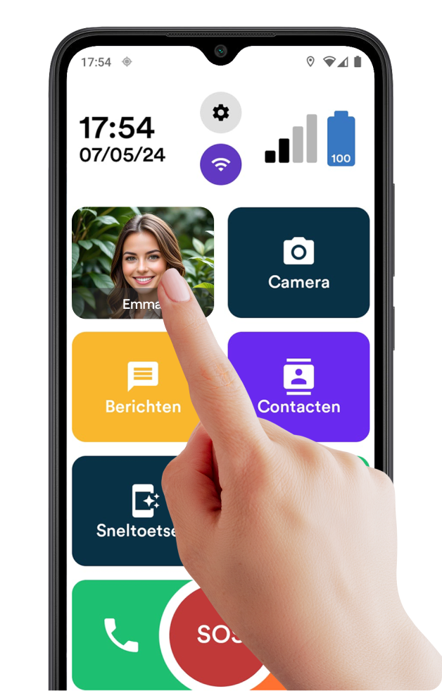 Large buttons, clear text, shortcuts to your contacts, video calling, SOS function and remote support – it's all there.