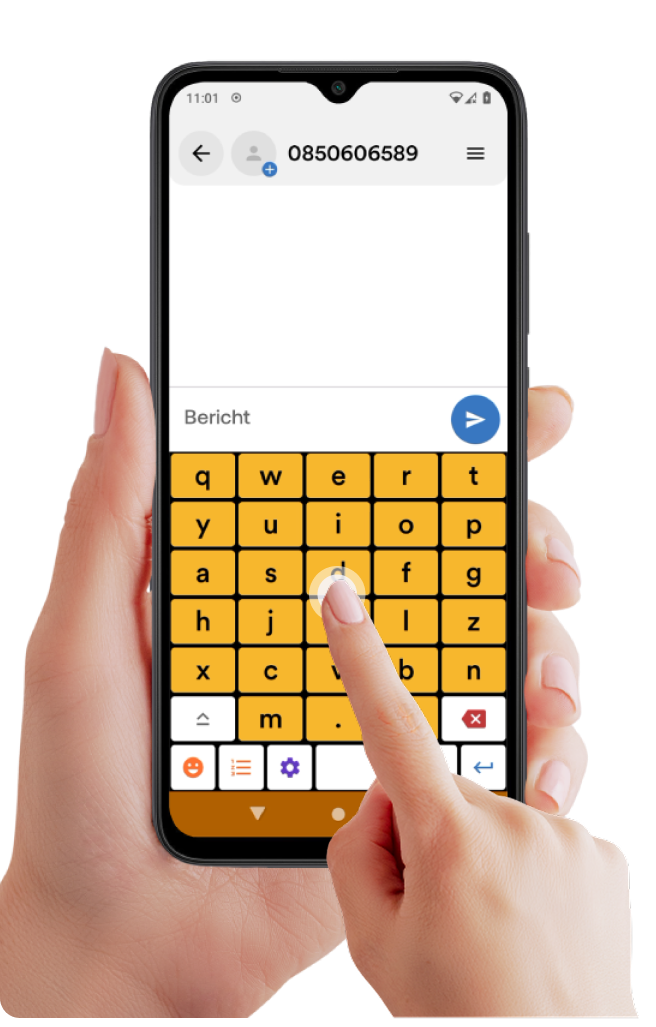 Choose how big you want the buttons, letters and keyboard to be. Our senior smartphone adapts to your needs. This way you can read messages effortlessly and type comfortably, without glasses or magnifying glass. Our extra large keyboard has been specially developed for visually impaired seniors. Of course, this is also optional and can be set completely to your wishes.